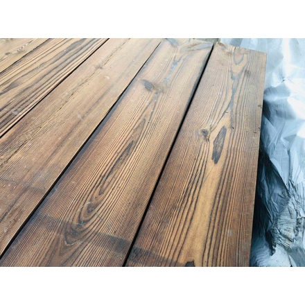 碳化木是指用190℃-250℃的高溫高壓對木材進(jìn)行長時間熱解處理得到的木材。經(jīng)過高溫處理的碳化木紋理突出,顏色華貴,并有木質(zhì)芳香,是尊貴的裝飾材料。
